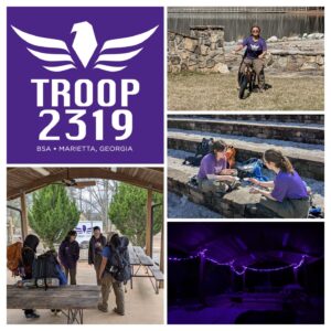 In June, we heading up to Woodruff Scout Camp for our annual week long summer camp. The week started out strong, we arrived and had an easy check in, scouts were smiling, exploring camp and just happy to be back, and the week just got better and better! The weather was just about perfect the entire week and everywhere you looked, you saw our scouts in our purple shirts smiling and having the time of there lives. Towards the end of the week, things kicked up another notch when two of our scouts, while out on a late night hike, found their way back to camp with a new friend in tow. A small orange cat followed them from the middle of the woods, 4 miles back to camp and wound up staying with us the rest of the week. One of scouts was even able to adopt him into their loving home. (we checked all the local missing pet pages, drove around, not chipped, no collar, etc. We couldn’t find any original owners)
