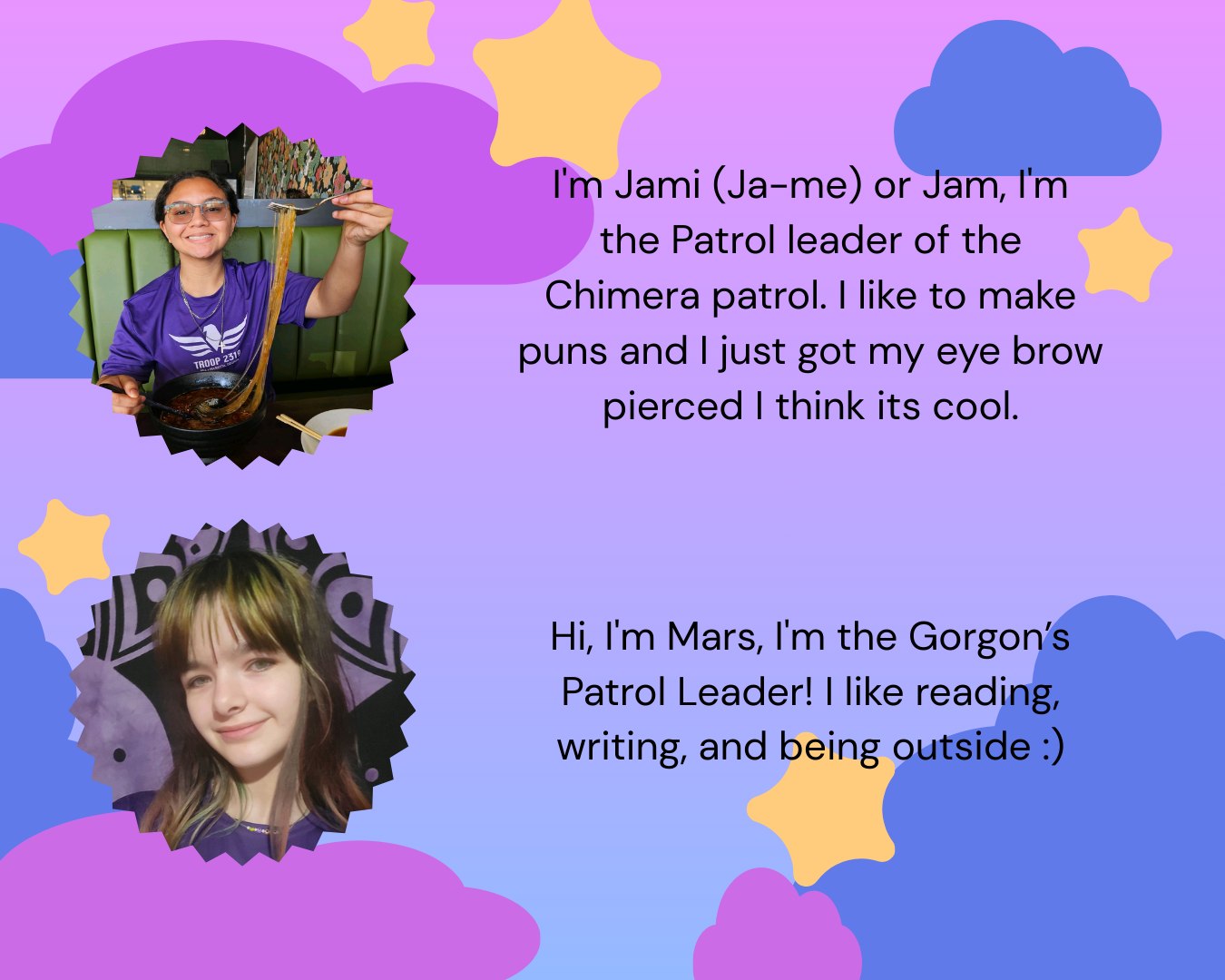 On this camp out our scouts went to Bert Adam’s Scout Camp to help out with the Cub Scout activities. Jam and Ash helped out with making puppets, and making catapults. We also made thurmatropee (the spinner it’s basically a game from the 1700 ) and one of our scouts helped with cope. Cope is a climbing thing and more of our scouts helped with the other craft. They did sand art, sensory bottles and other cool crafts. Lastly, we helped with the haunted mansion where they basically helped cubs make different crafts. After all of our hard work we went to go to the haunted trail where Ash and a few other scouts dressed up and staffed at the trail.